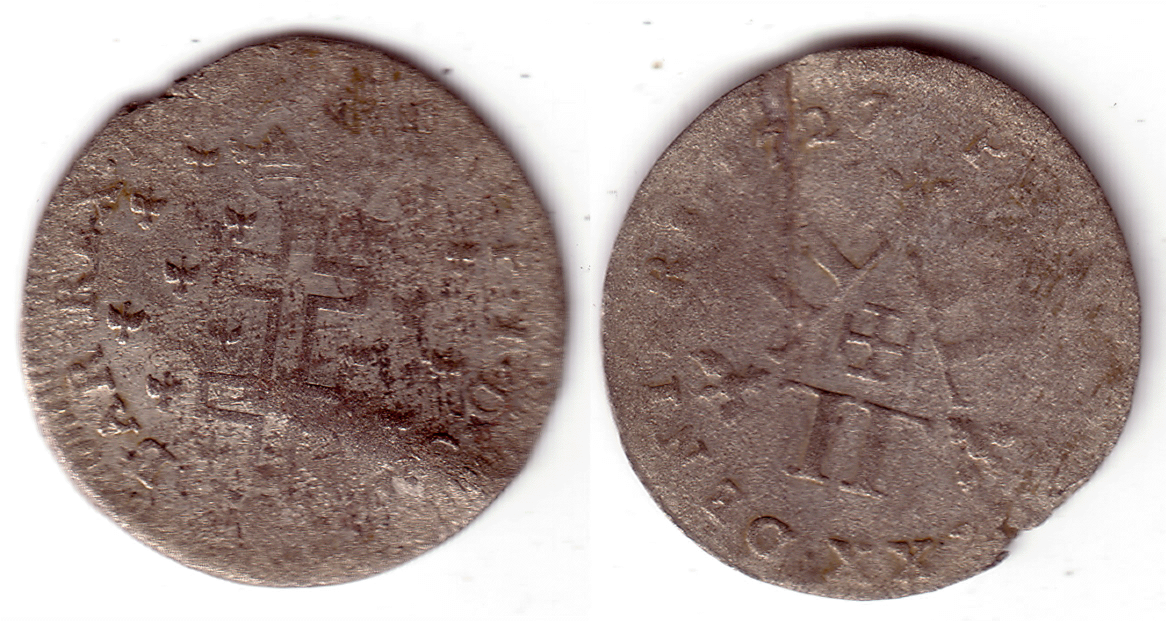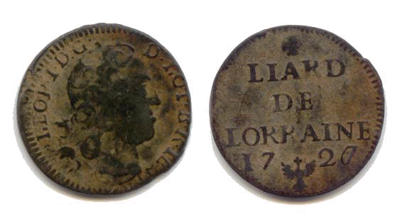 V Liards Voici une monnaie qui est normalement répertoriée aux numéros 40 à 44 dans le Flon en fonction des légendes. Il existe aussi quelques nuances dans la formes des armes mais elles sont toutes dessinées sur le même modèle. En voici l'image