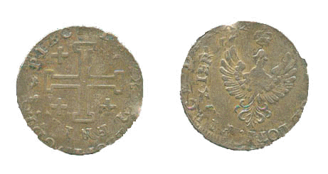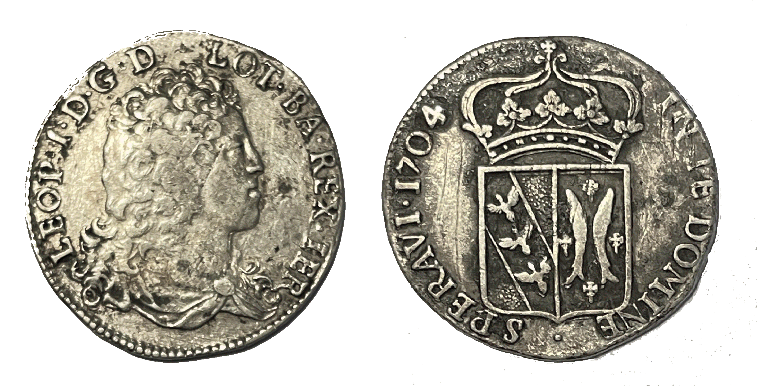 Voici un teston frappé sur flan neuf pour 1704 mais dont le portrait n'est pas celui utilisé habituellement pour cette année. Il s'agit la du nouveau buste qui n'était connu que pour les monnaies à partir de 1705. La transition a donc eu lieu en 1704 et une nouvelle ligne est à rajouter au monnayage de Léopold. Le poids de la monnaie est de 8.03 g. Merci à Ph. Chaton.