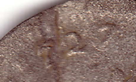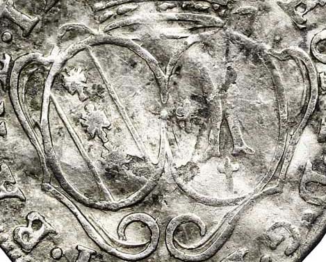 L'exemplaire découvert varie dans les parenthèses qui encadrent les armes. Voici la photo