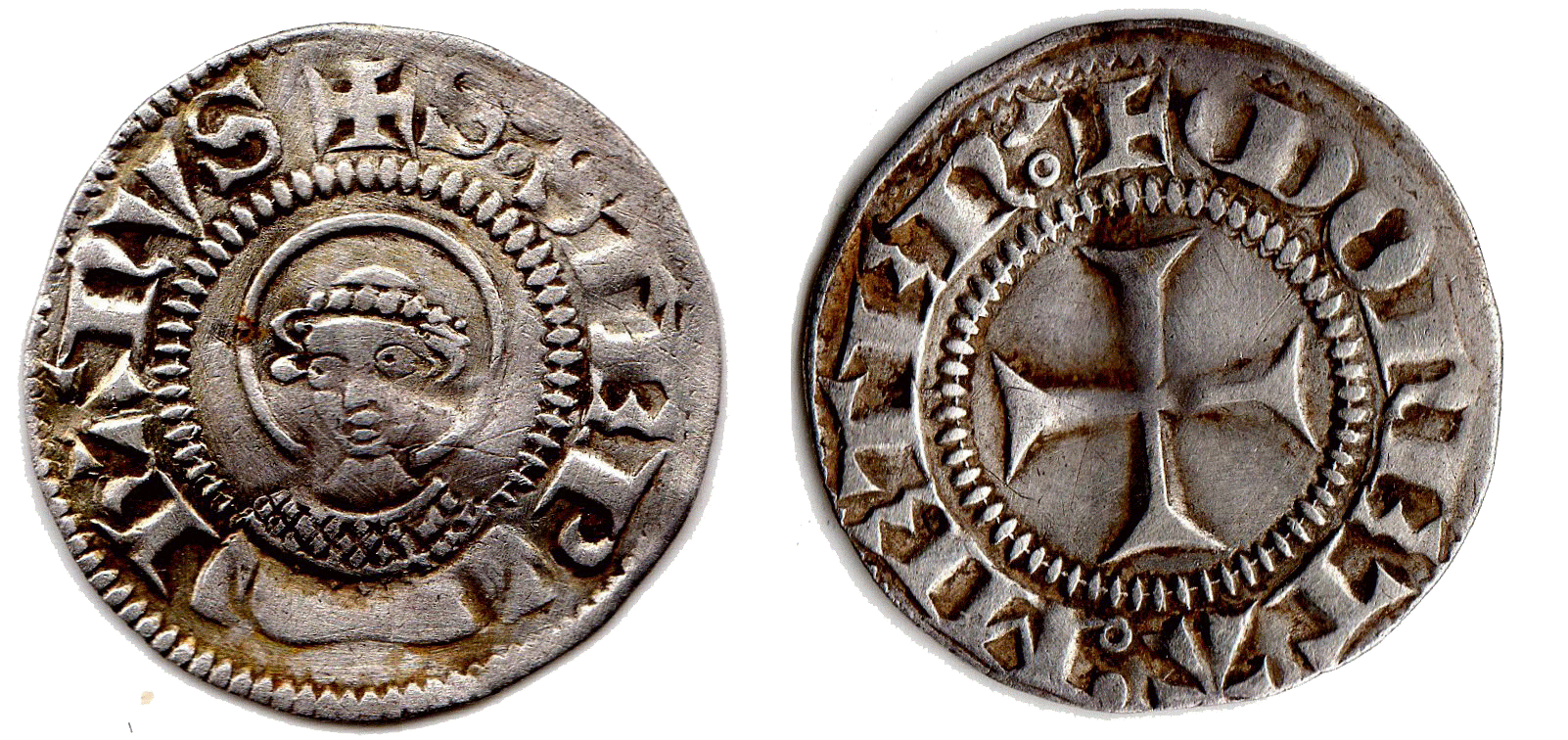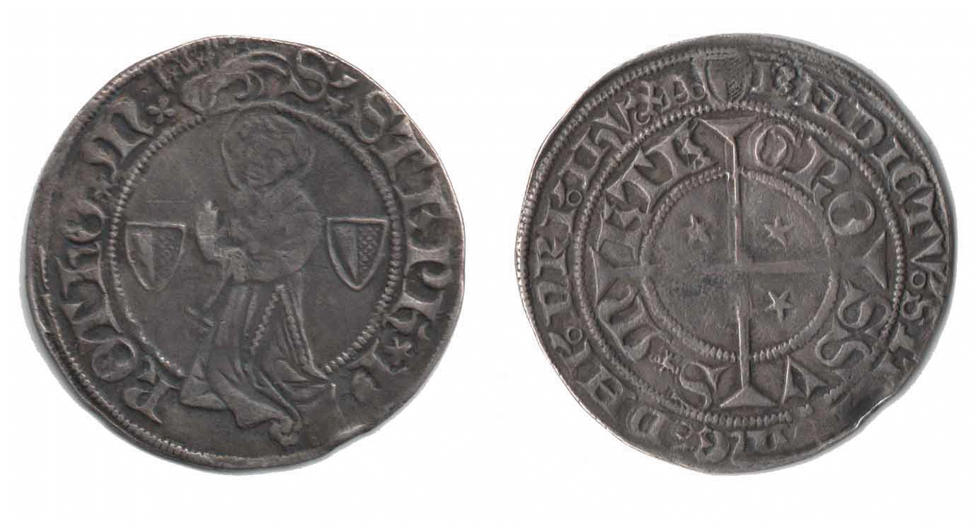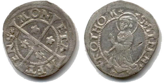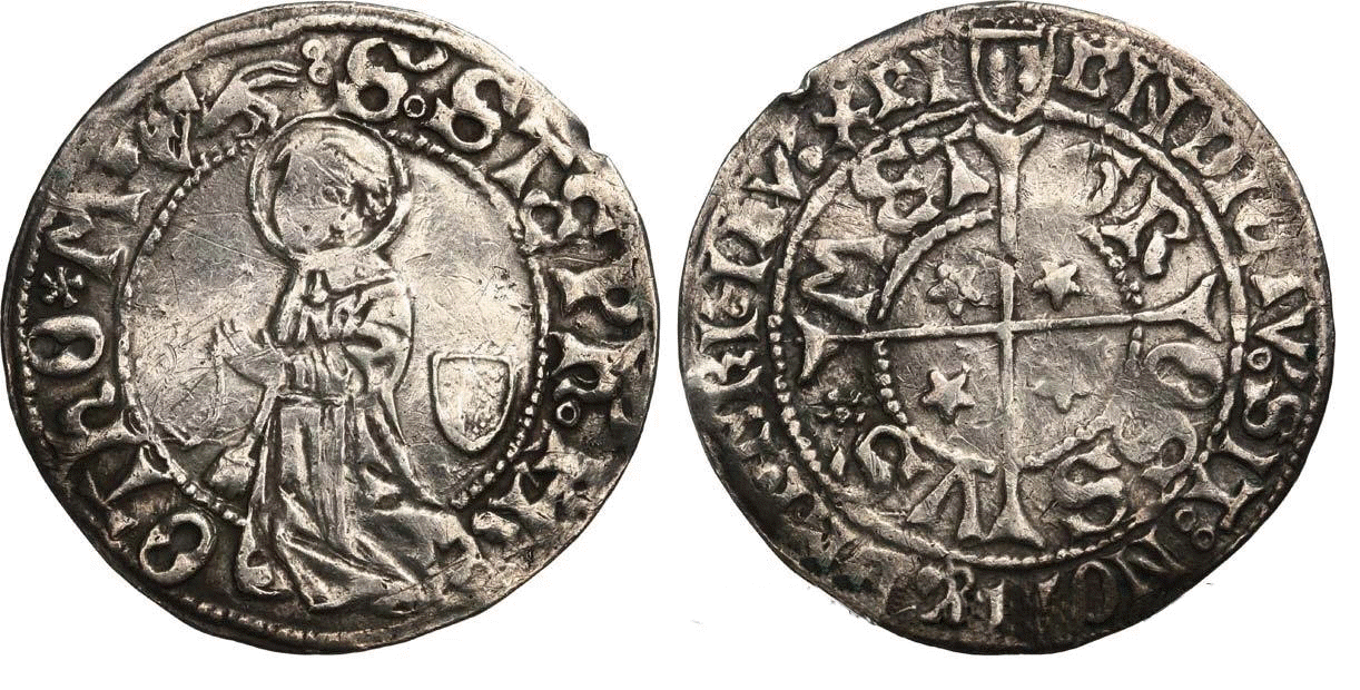 Voici un gros qui semble à première vue identique à beaucoup d'autres monnaies de ce type mais en y regardant attentivement on remarque un signe inhabituelle dans la légende GROSSVS METENS. En effet en lieu et place de l'étoile habituelle se trouve ce qui ressemble à un alérion.